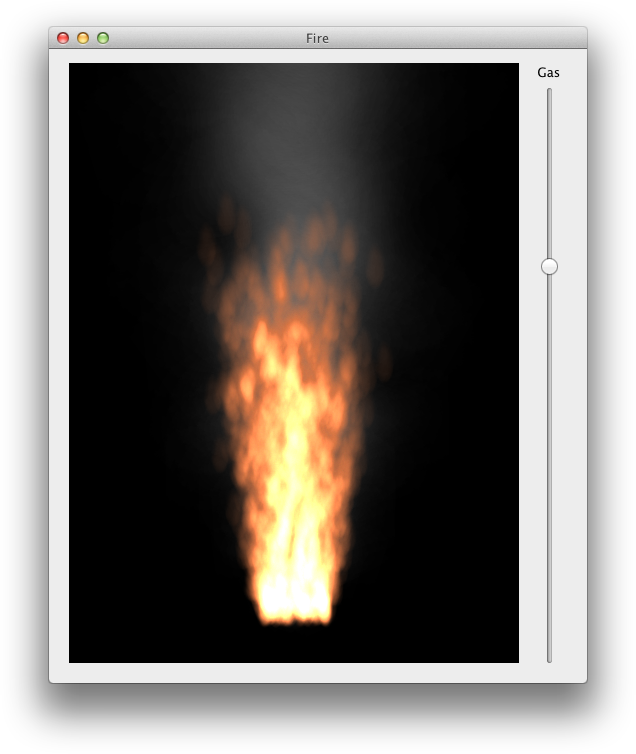 This application demonstrates the use of Core Animation's particle system classes: CAEmitterLayer and CAEmitterCell. Two emitters and cells are used to create fire and smoke effects. Particle images are loaded from the application's bundle and the properties of the particles and emitters are animated.